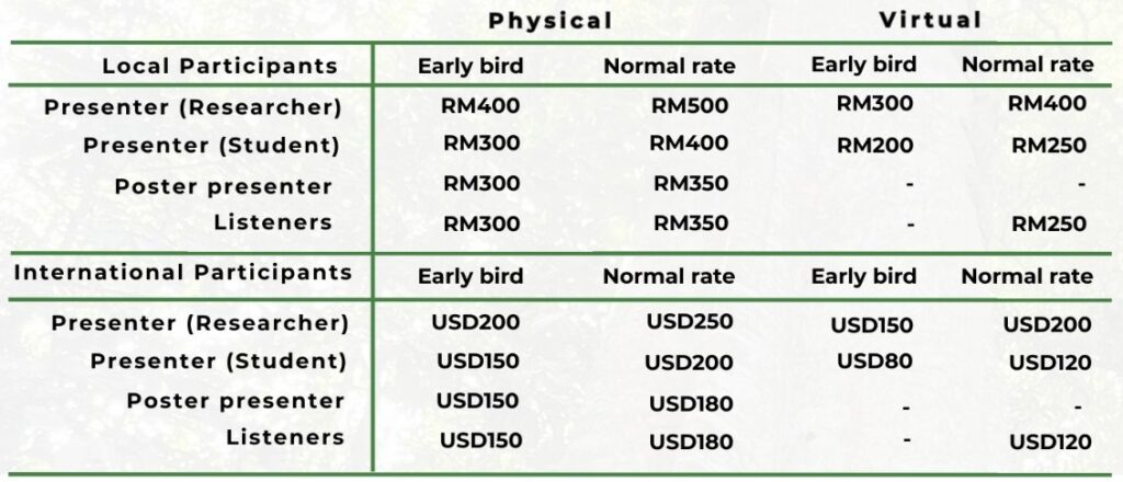 Kindly note that a fully paid conference fee is for one presenter per paper only and the registration fee is non-refundable.